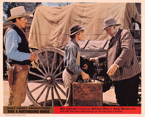 Lobby card for the Walt Disney's Wonderful World of Color two-part episode Ride a Northbound Horse, based on the young adult novel by Richard Wormser. The episodes aired in the U.S. on March 16 and 23, 1969, but were released theatrically overseas.